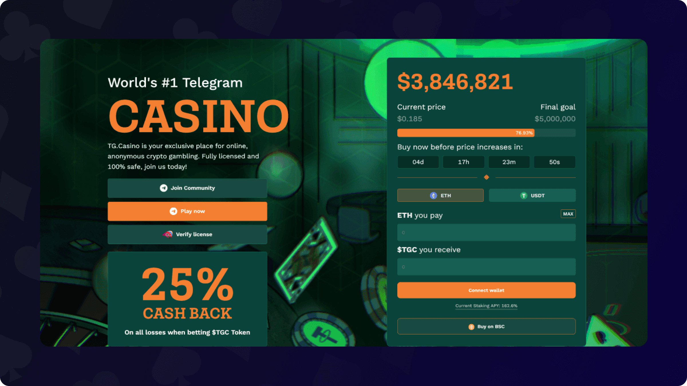 Aby zapewnić najszybszy start, CoinCasino oferuje prosty proces rejestracji, w którym wystarczy podać adres e-mail. Możesz dodatkowo wybrać natychmiastową rejestrację za pośrednictwem WalletConnect, co przyspieszy również wpłatę.
